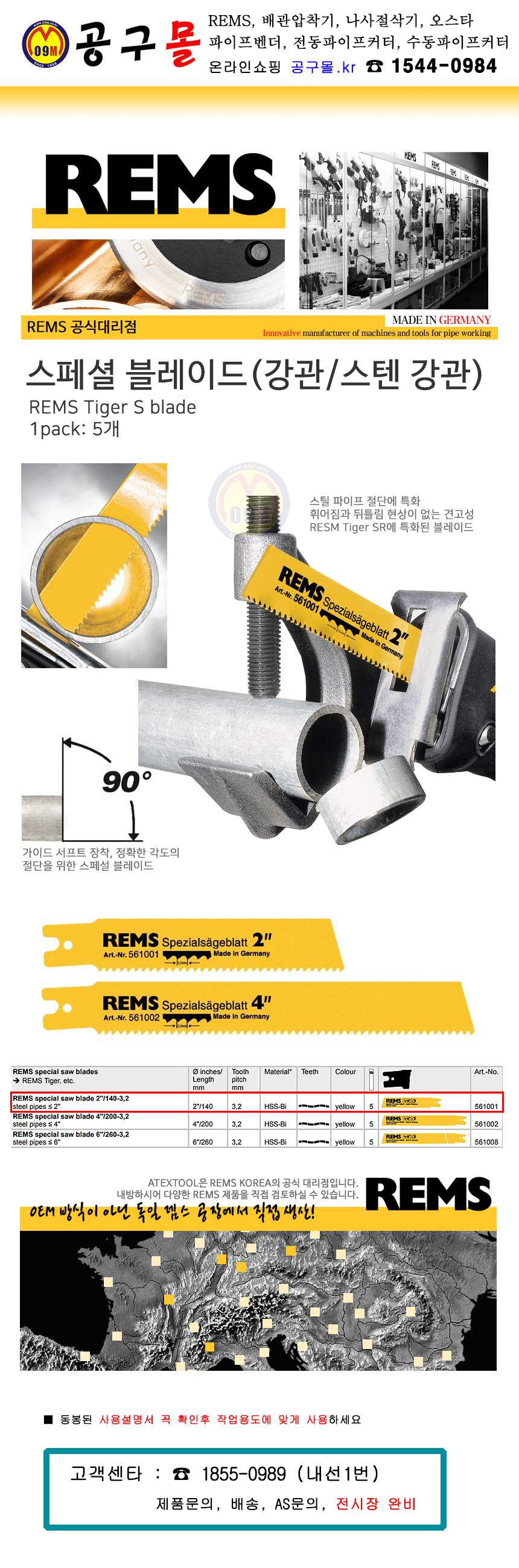 렘스 컷쏘날(강관용/스텐용) (2) 561001 R05 노랑(1팩5개) 140mm (560026용) REMS, 공구몰, 독일제조