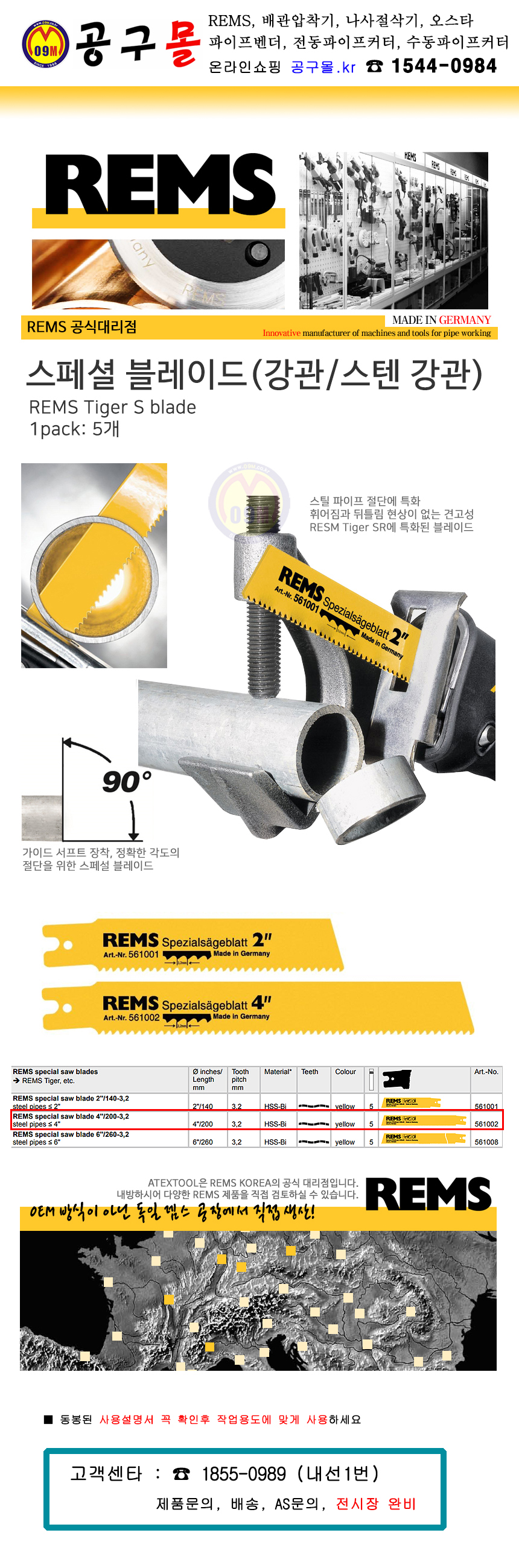 렘스 컷쏘날(강관용/스텐용) 4 561002 R05 노랑(1팩5개) 200mm (560026용) REMS, 공구몰, 독일제조