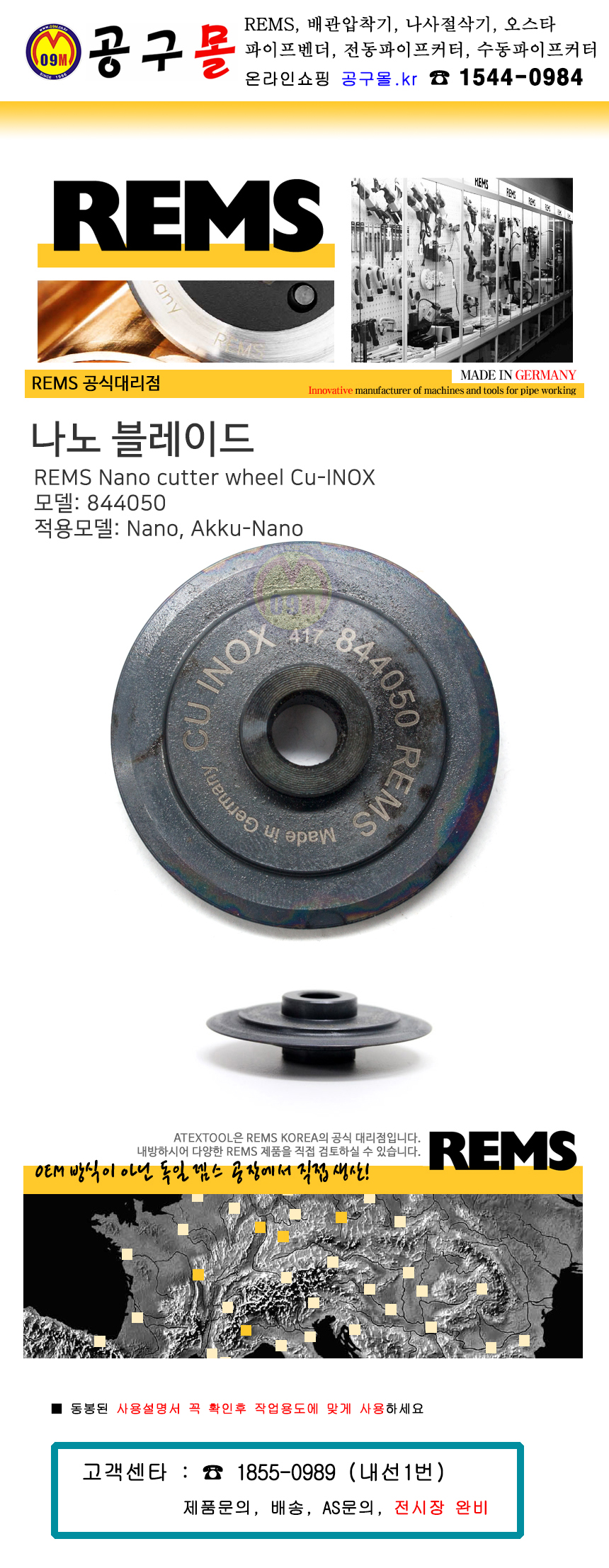 렘스 전동 파이프커터 스텐날 844050 R 나노용 (113100,113000) REMS, 공구몰, 독일제조