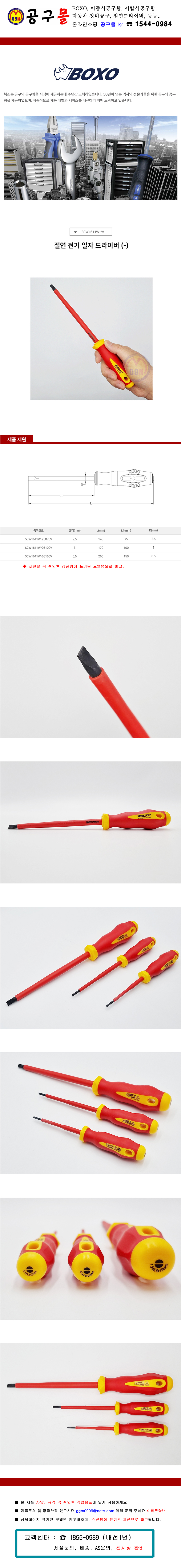BOXO 절연드라이버 (-) SCW1611W-03100V 복소, 공구몰, 일자드라이버