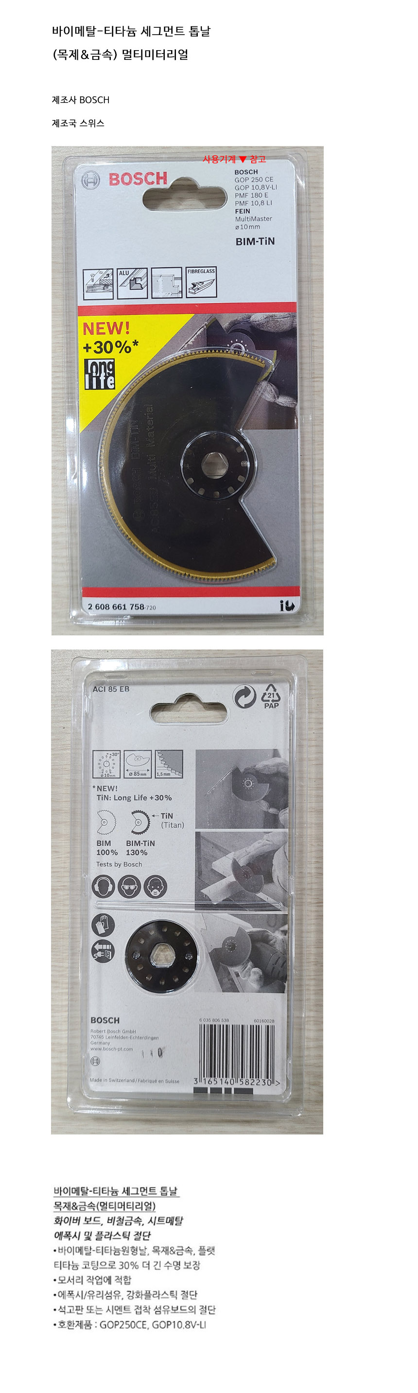 보쉬 바이메탈-티타늄 세그먼트 톱날 ACI85EB,BIM-TIN (금속,목재) BOSCH, 보쉬, 2608661758