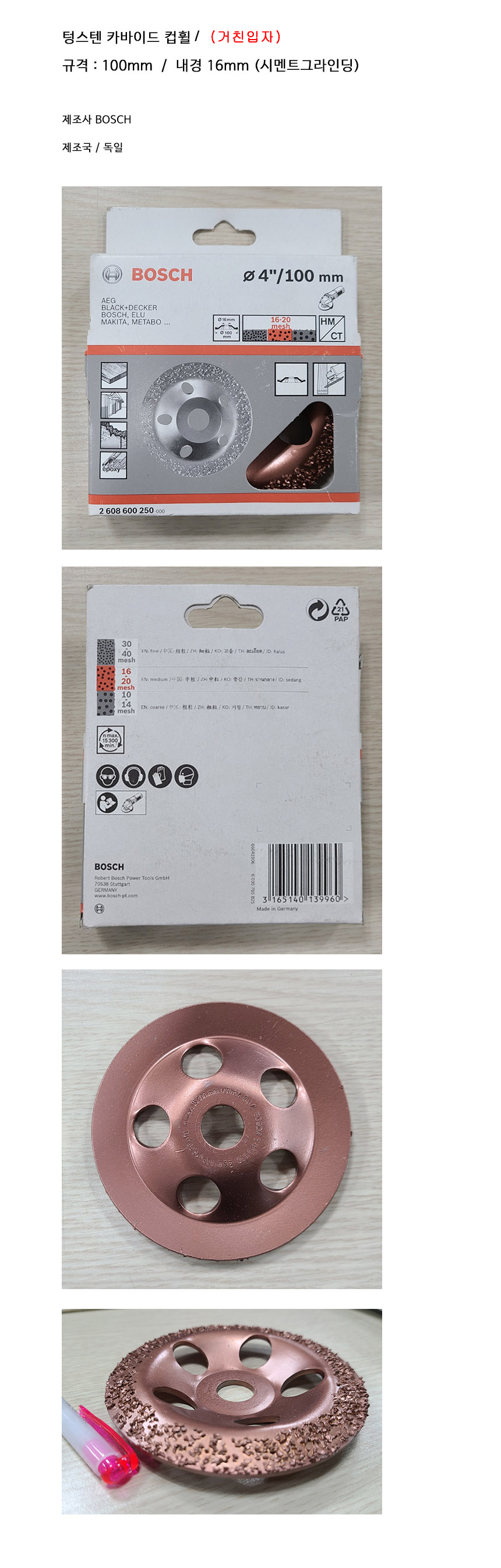 보쉬 텅스텐 카바이드 컵휠 100x16mm, (거친입자) BOSCH, 보쉬, 2608600249