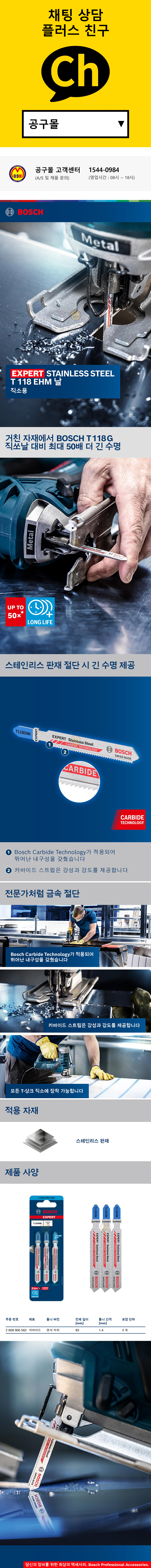 보쉬 EXPERT 직소날 T-118AHM (3개 1팩) 스텐용 스테인리스용 얇은스텐용 직쏘날