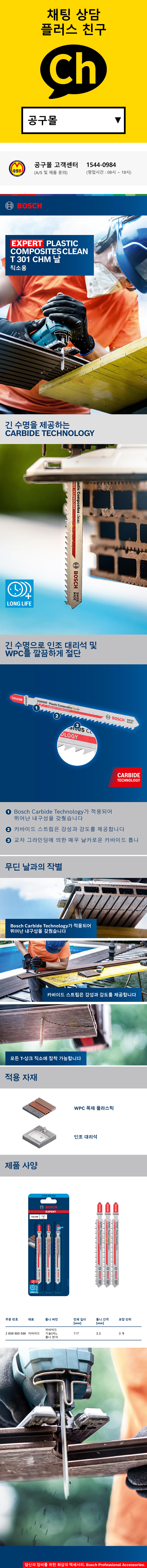 보쉬 EXPERT 직소날 T-301CHM (3개 1팩) 인조대리석용 WPC 목재용 플라스틱용 직쏘날