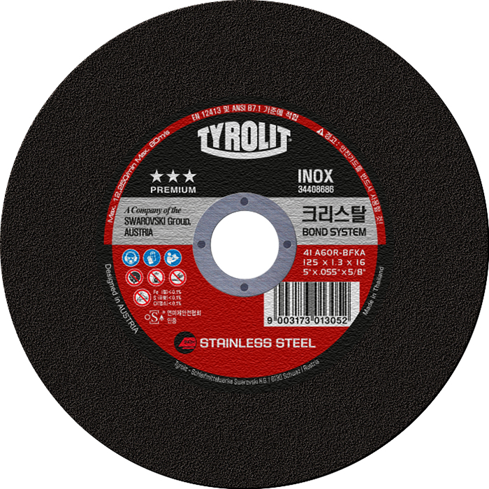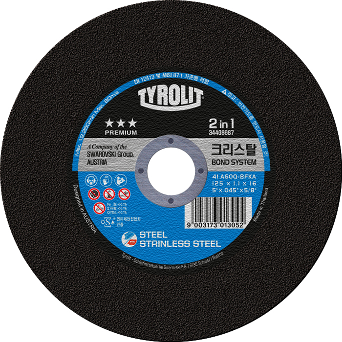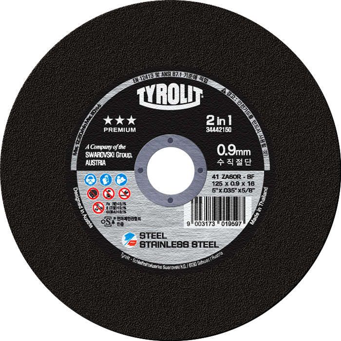 티롤릿 125mm 절단석(실버) 스텐커팅, 철재절단, 공구몰, TYROLIT, 34442150