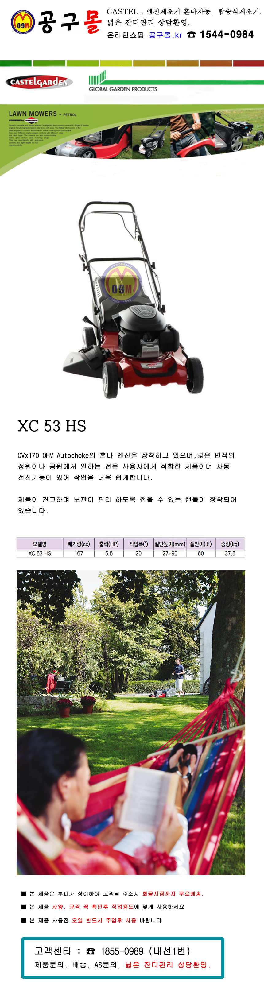 카스텔 엔진잔디깍기 XC53HS (자주식, 167cc, 5.5HP, 60L) 엔진제초기, 엔진모아, 자동제초기, 공구몰