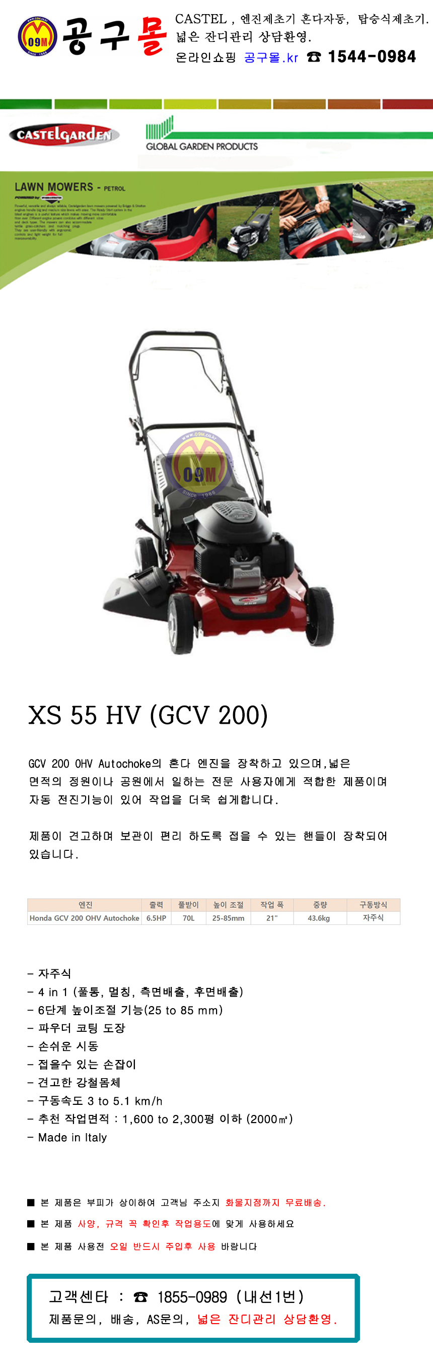 카스텔 엔진잔디깍기 XS55HV (GCV200) (자주식, 6.5HP, 70L) 엔진제초기, 엔진모아, 자동제초기, 공구몰