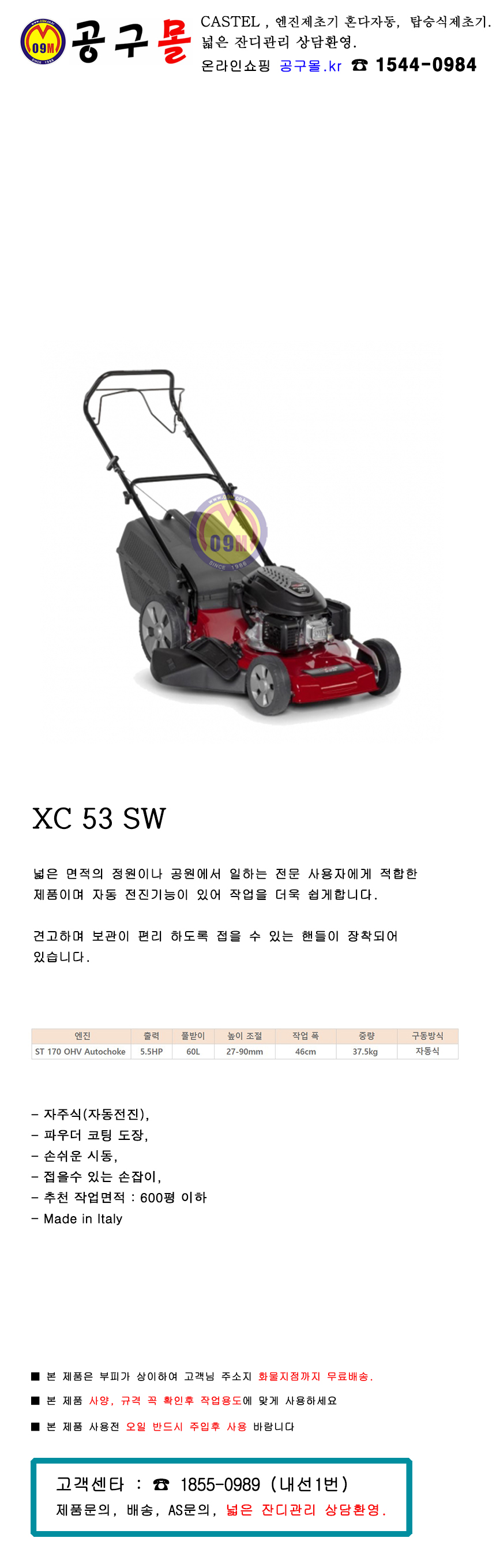 카스텔 엔진잔디깍기 XC53SW (자주식, 5.5HP, 60L) 엔진제초기, 엔진모아, 자동제초기, 공구몰