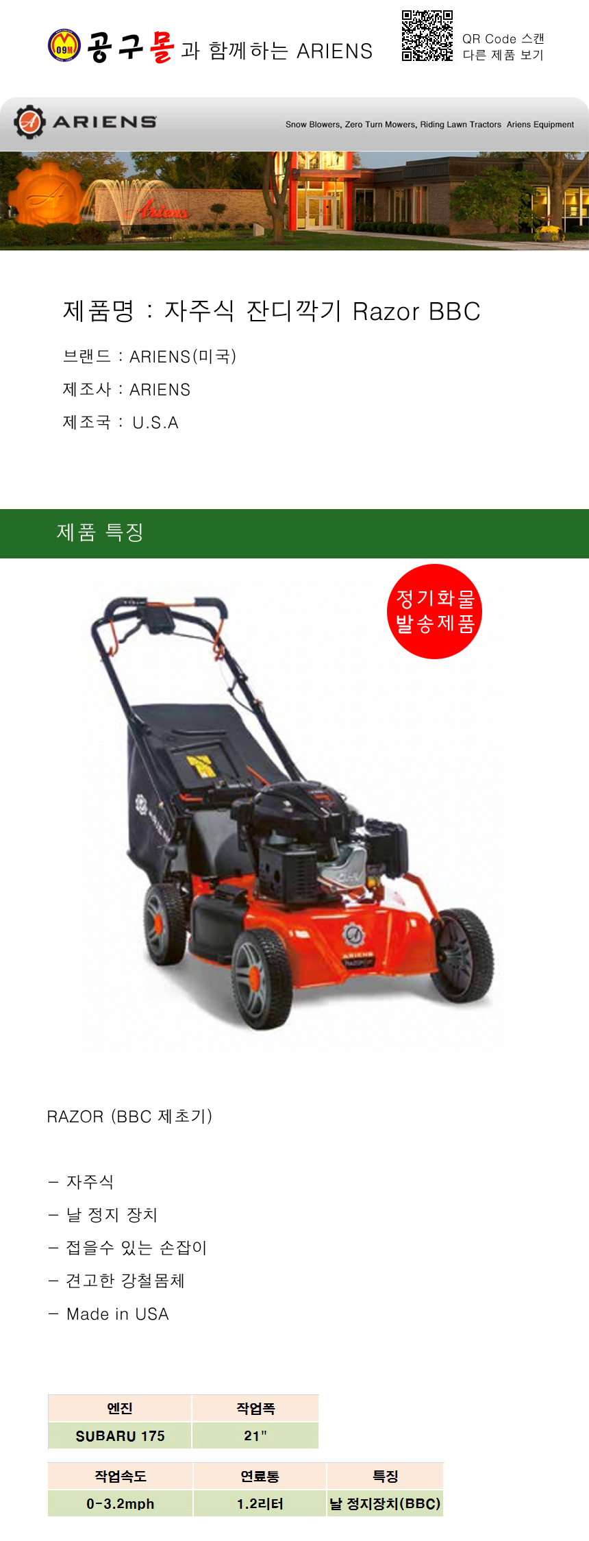 ARIENS 자주식 잔디깍기 RazorBBC 아리엔스, 공구몰, 예초기, 경게예초기