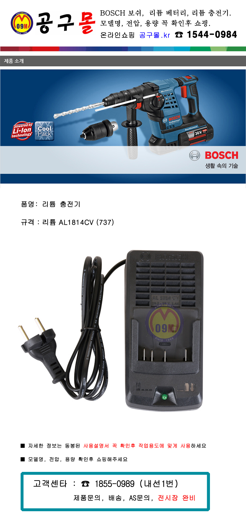 보쉬 리튬 충전기 AL1814CV BOSCH, 충전드릴용, 보쉬드릴용, 공구몰, 2607225737, C506-1495
