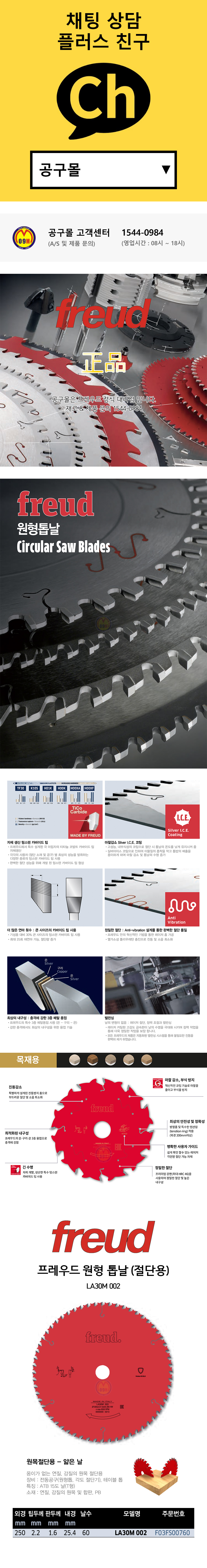 프레우드-목공용팁쇼 LA30M002 10-60날) 절단용, 켜는날, 팁쏘, 겸용원형톱날, 테이블쏘톱, 공구몰