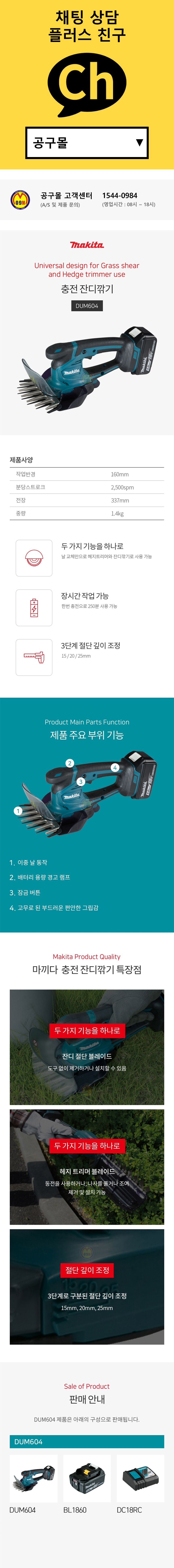 마끼다 충전잔디깍기 DUM604 (5Ah,1B,세트 핸들포함) 바리깡 잔디깎기 전정기