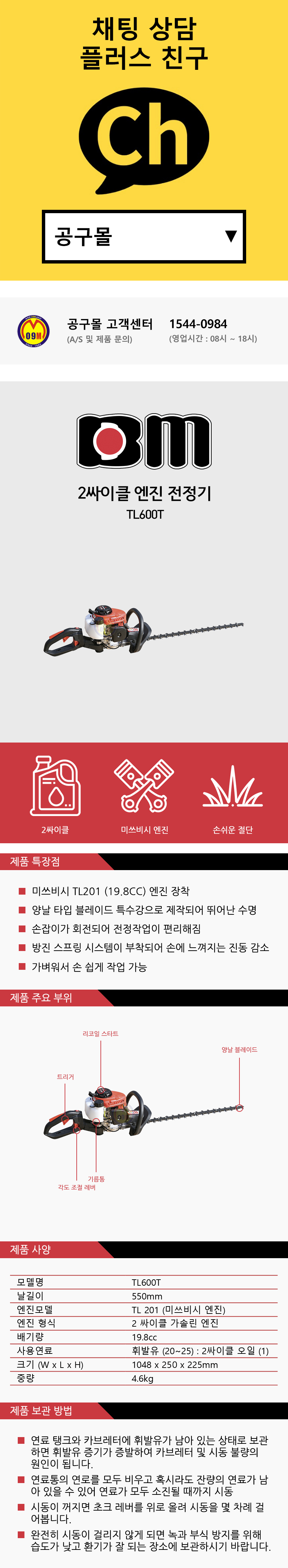 북성-2싸이클 전정기 TL600T (20cc-550mm) 엔진트리머, 헤지트리머, 공구몰