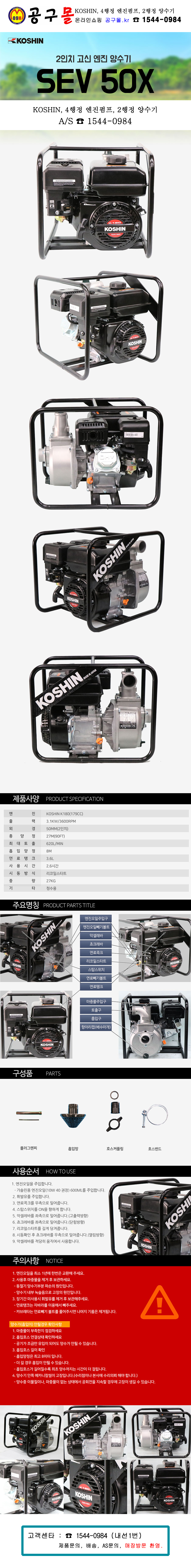 고신 엔진양수기(4행정) SEV50E (2) 고신엔진K210S 흡입8m,무게30KG,출력4.3Kw/3600rpm, 물펌프