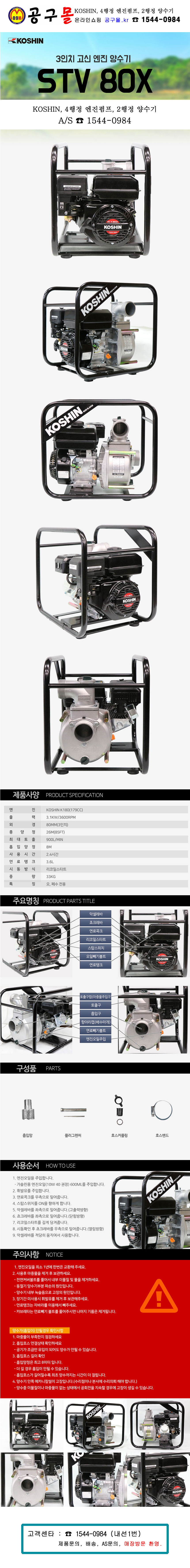 고신 엔진양수기(4행정) STV80X (3) 고신K180(179CC), 흡입8m,무게33KG,출력3.1kw/3600rpm, 물펌프