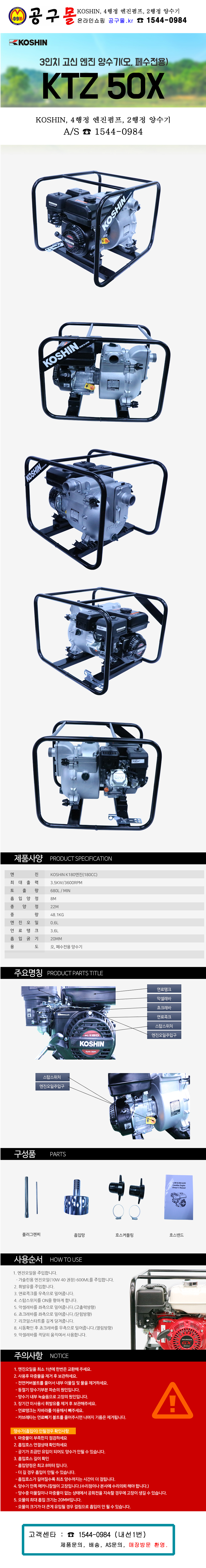 고신 엔진양수기(4행정) 오,페수전용, KTZ50X (2) 고신K180엔진(180CC), 흡입8m,무게48KG,출력3.5kw/3600rpm, 물펌프