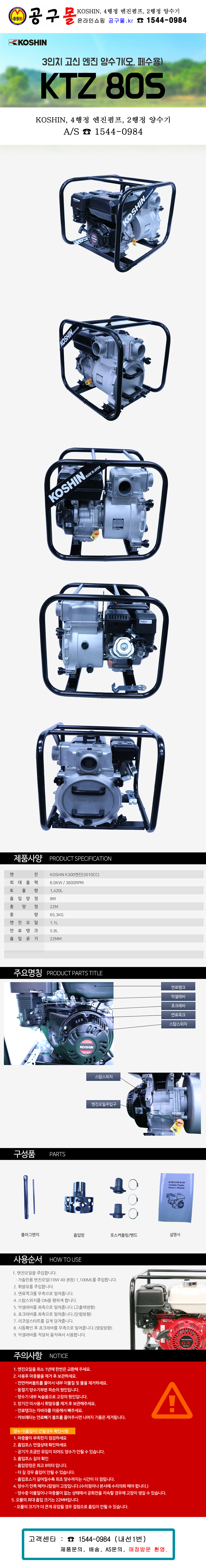 고신 엔진양수기(4행정) 오,페수전용, KTZ80S (3) 고신K300엔진(301CC), 흡입8m,무게65KG,출력6.0KW/3600rpm, 물펌프