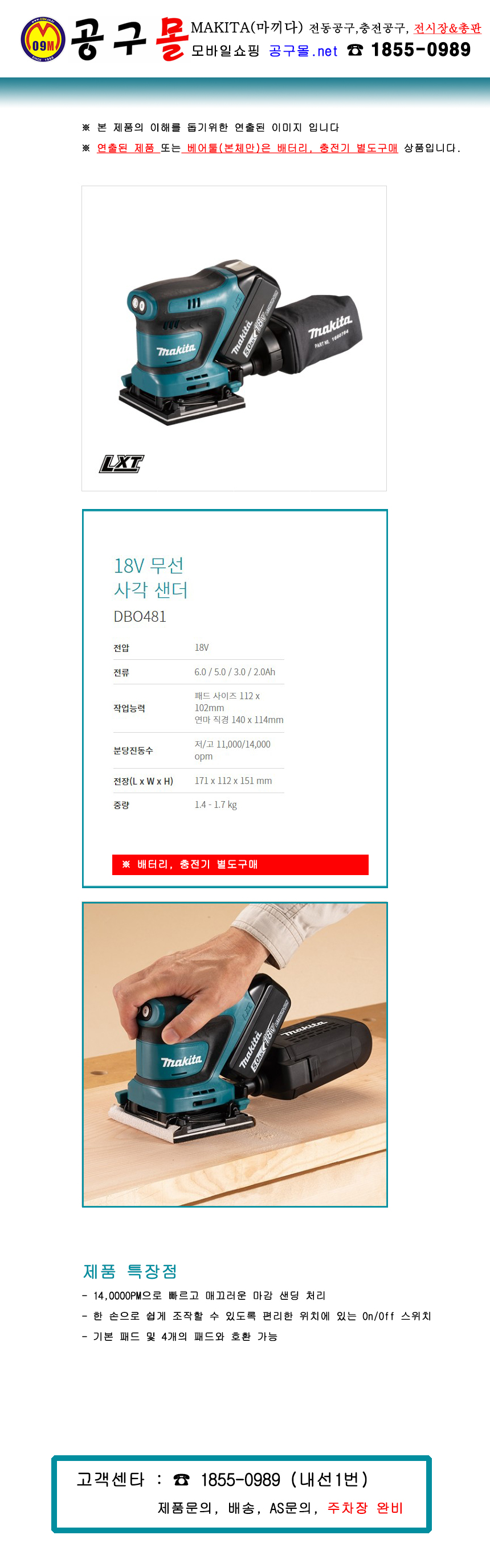 마끼다-18V 무선 사각샌더 DBO481(배터리별매) 충전샌더기, 파포기계, makita