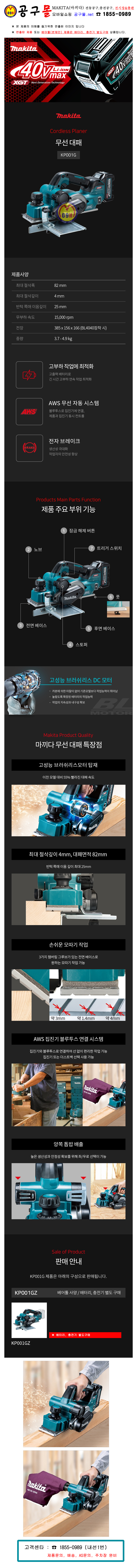 마끼다-40Vmax 무선대패 KP001GZ(배터리별매) 충전대패, makita