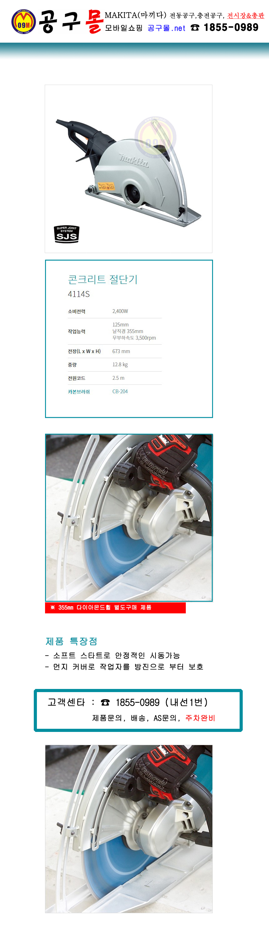 마끼다 콘크리트 절단기 4114S (355mm 날별매) 220V-2400W, 공구몰