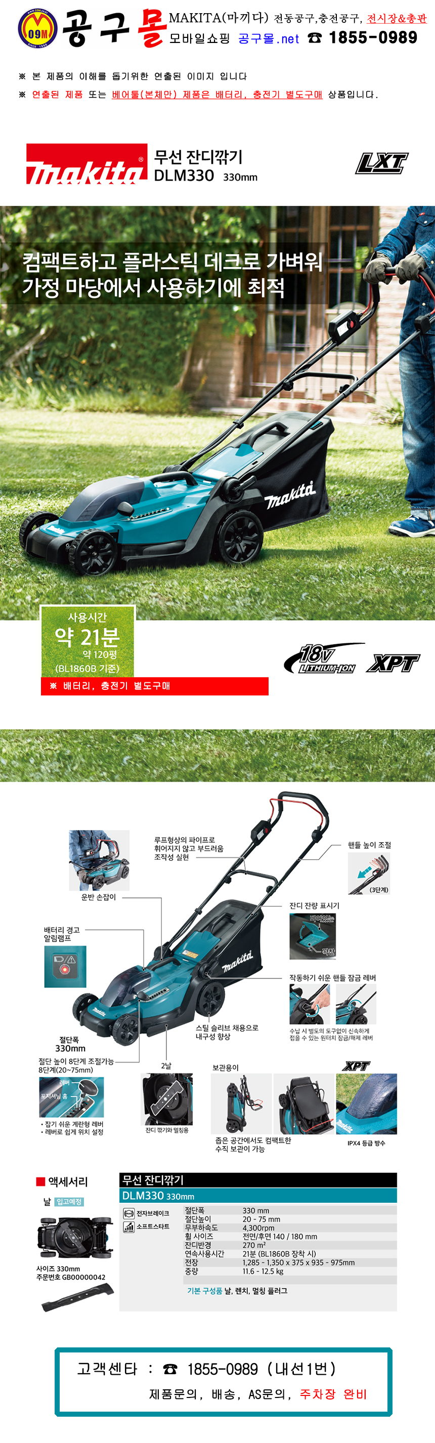 마끼다-18V 무선잔디깎기 330mm DLM330Z (베어툴) 30L, 충전잔디깍기, 충전제초기, 공구몰