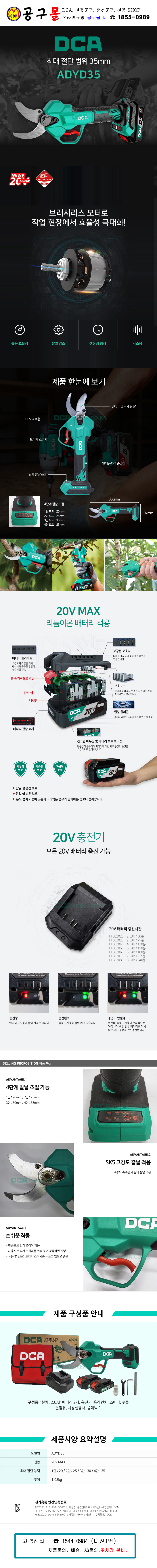 DCA-무선 전지가위 ADYD35 (20V,2Ah,2B) 충전가위, 공구몰