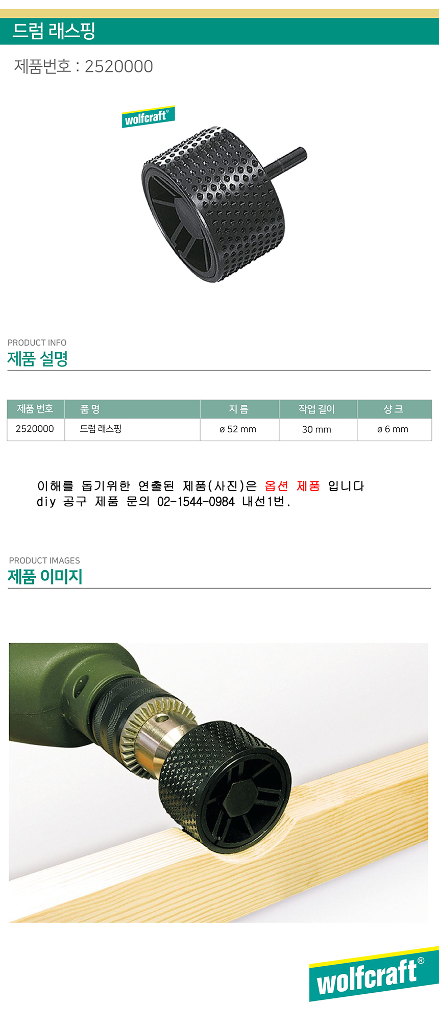 울프크래프트 드럼래스핑 (2520000) 직경52mm, Wolfcraft, 목공구, 공구몰닷컴