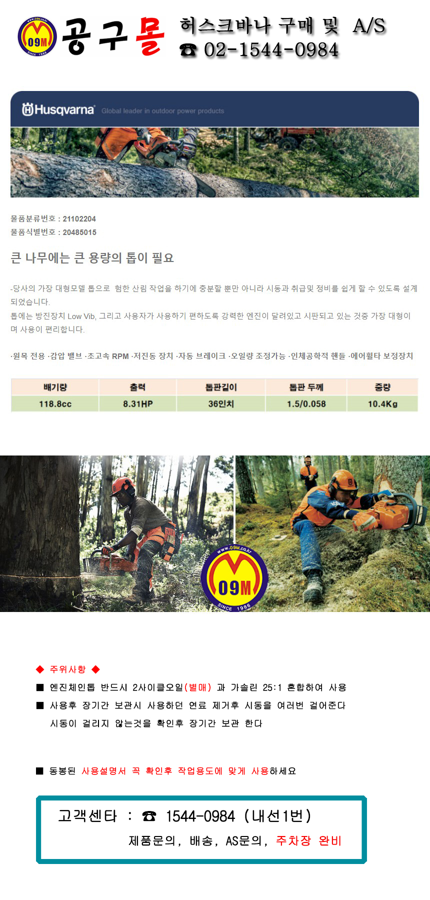 허스크바나 엔진톱 3120XP 118.8CC(36) 10.4Kg 체인톱, 공구몰