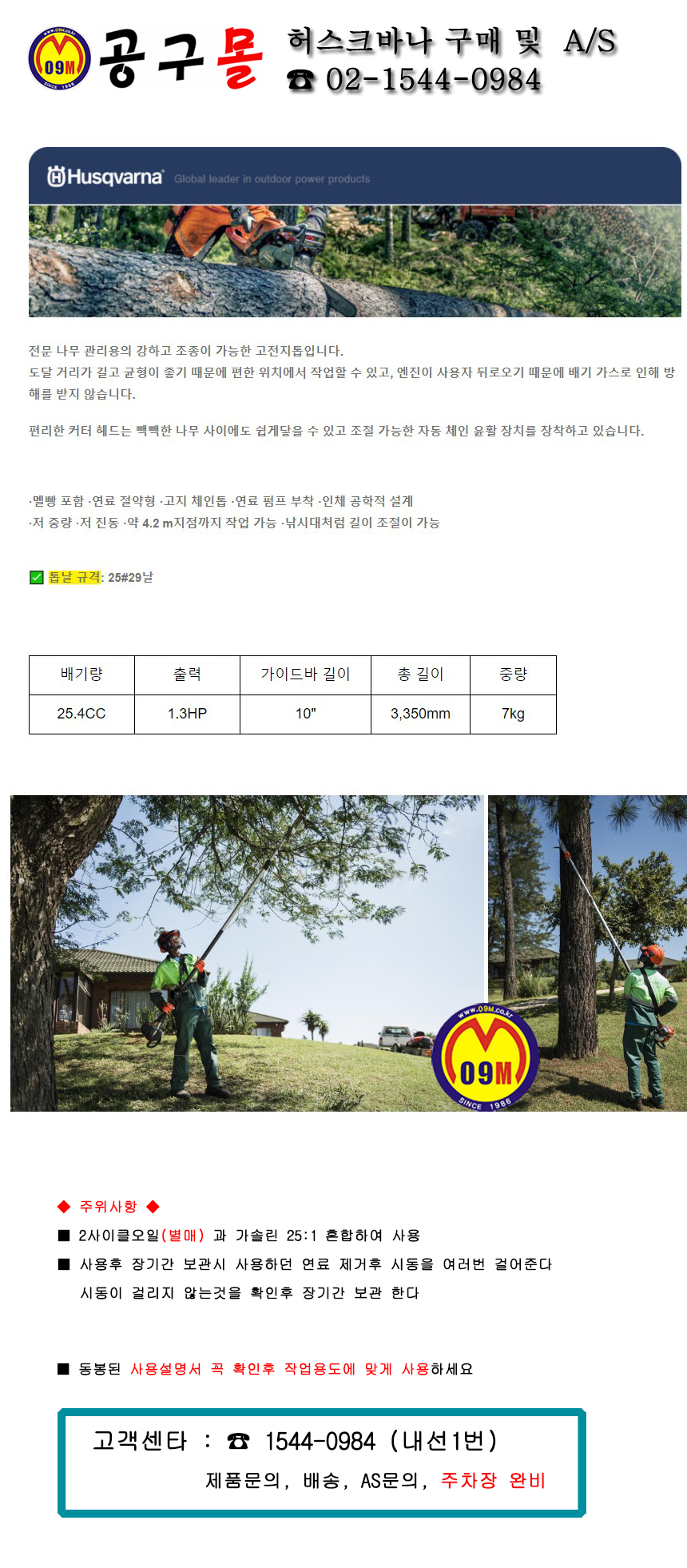 허스크바나 엔진고지톱 525PT5S 25.4cc, 3350mm, 7Kg 엔진톱, 공구몰