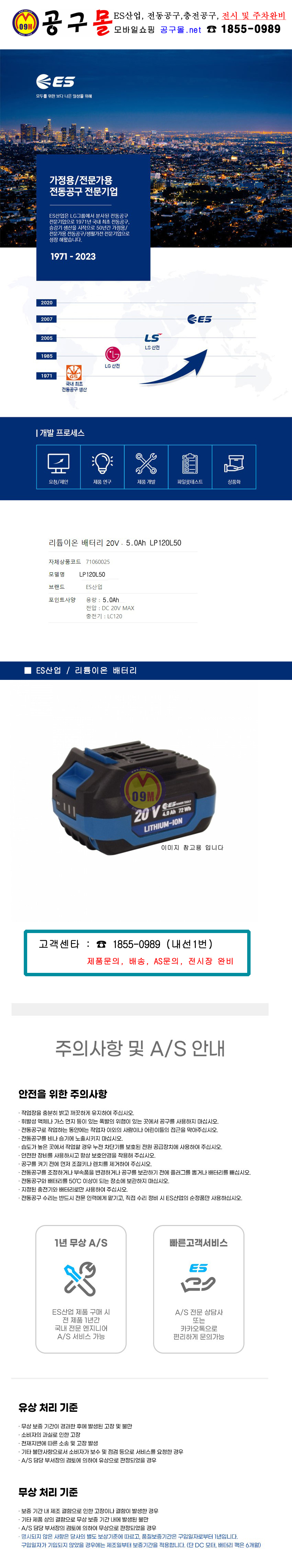 ES산업 20V 리튬이온 배터리 LP120L50 5.0Ah 18V,이에스산업, 공구몰