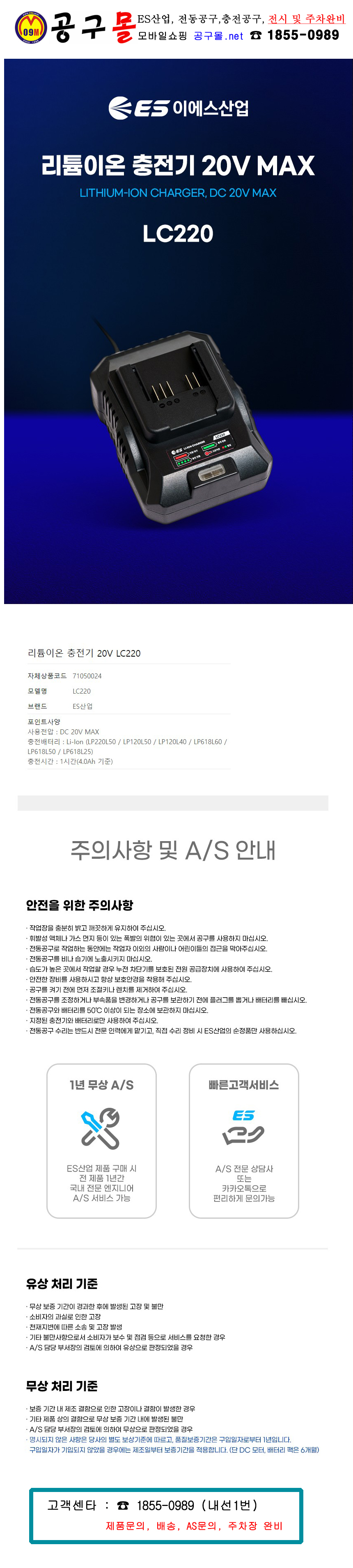 ES산업 20V 리튬이온 충전기 LC220 18V,이에스산업, 공구몰