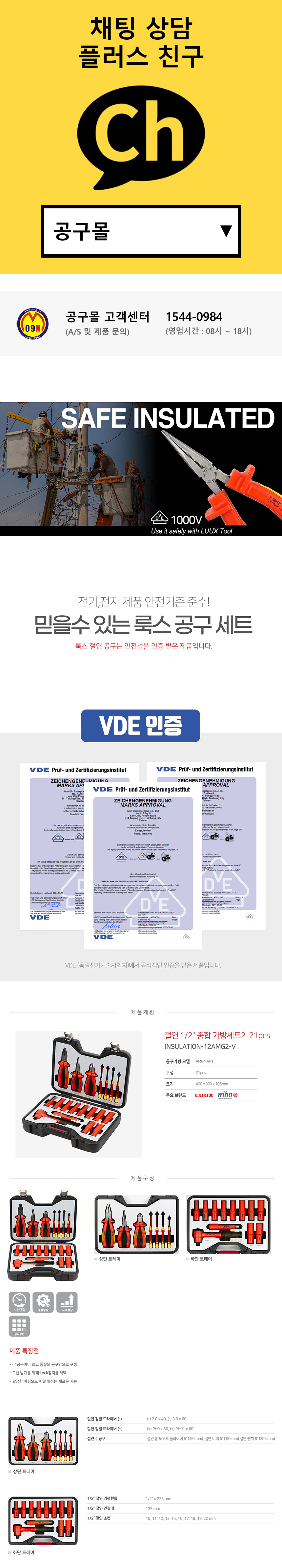 룩스 절연 공구 가방세트 INSULATION-12AMG2-V (21PCS) 절연공구세트 1/2복스세트