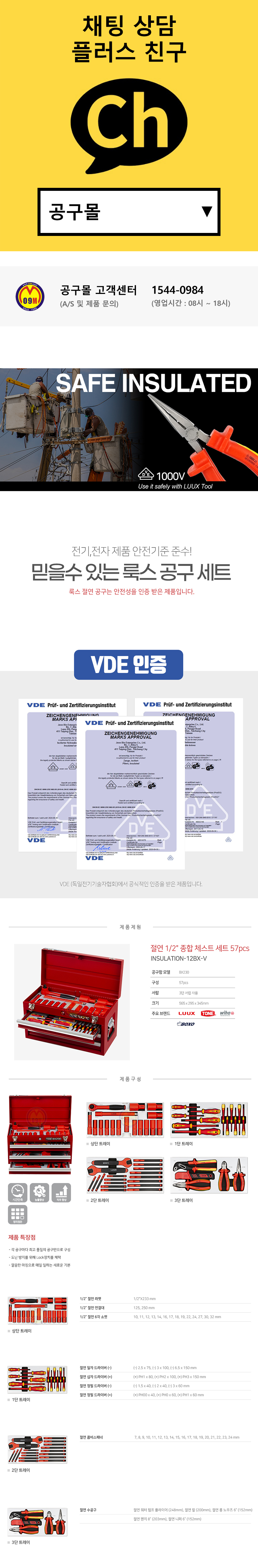 룩스 절연 공구 세트 INSULATION-12BX-V (57PCS) 절연복스세트 공구함