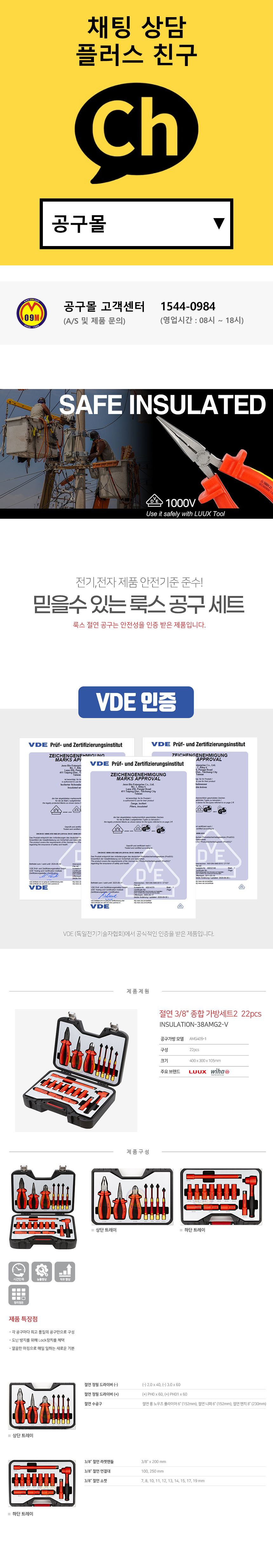 룩스 절연공구세트 INSULATION-38AMG2-V (22PCS) 절연복스세트 공구세트