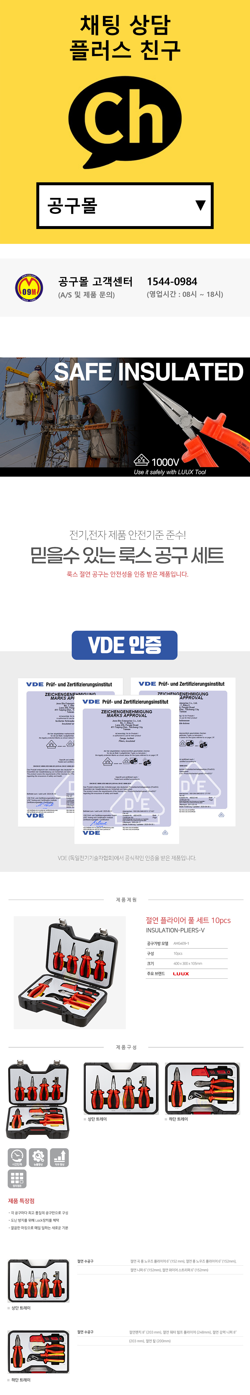룩스 절연플라이어세트 INSULATION-PLIERS-V (10PCS) 절연공구 공구세트