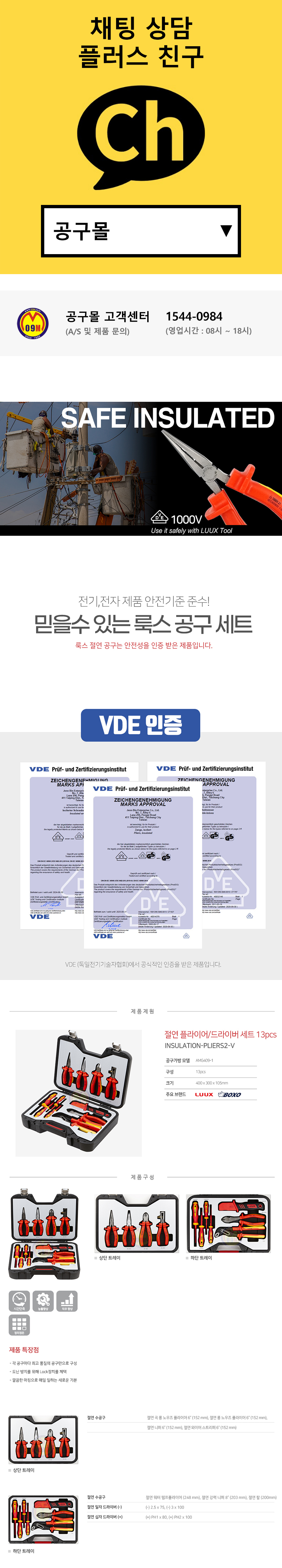 룩스 절연플라이어세트 INSULATION-PLIERS2-V (13PCS) 절연공구 공구세트