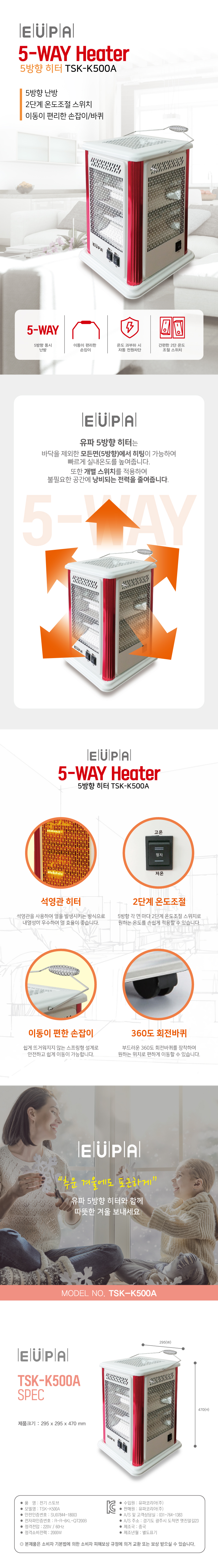 유파 오방히터 TSK-K500A 2단계 온도조절