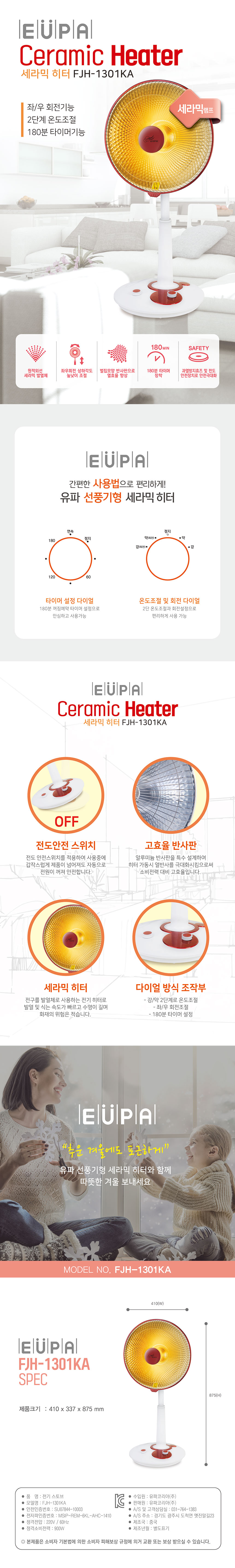 유파 선풍기형 히터 FJH-1301KA 원적외선 방식
