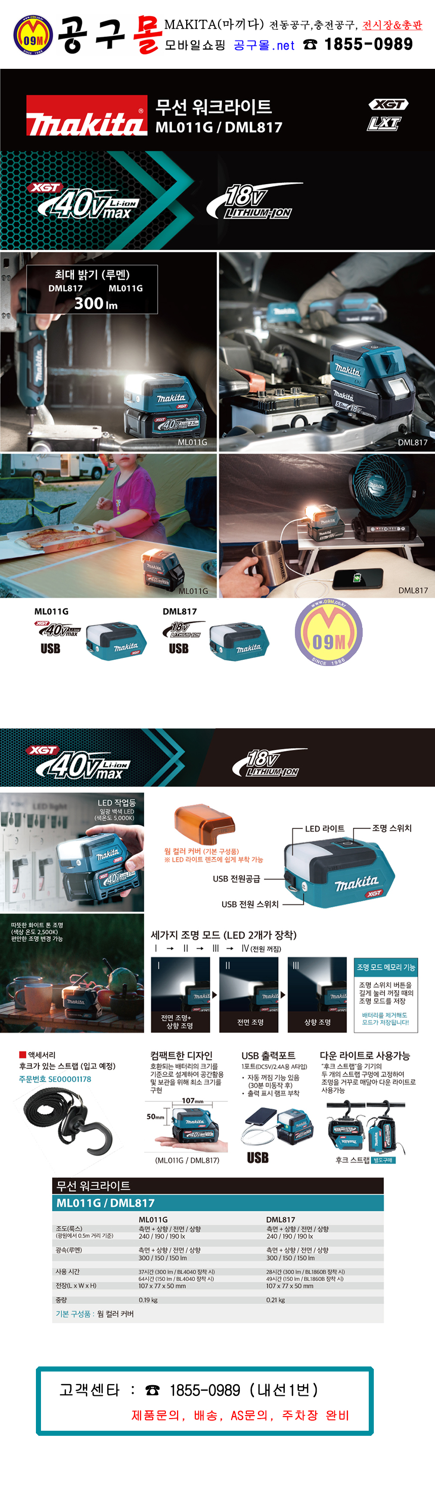 마끼다-40V 무선 워크라이트 ML011G MAKITA, 공구몰 울산점, CORDLESS WORKLIGHT