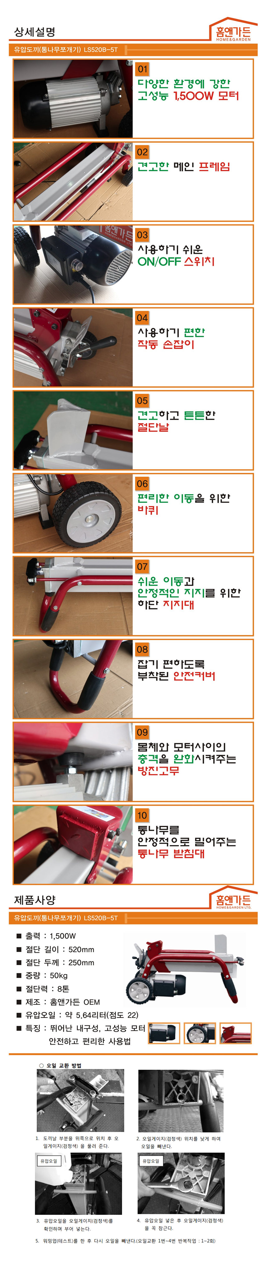 유압도끼(통나무쪼개기) LS520B(250mm) 장작패기,도끼,장작도끼
