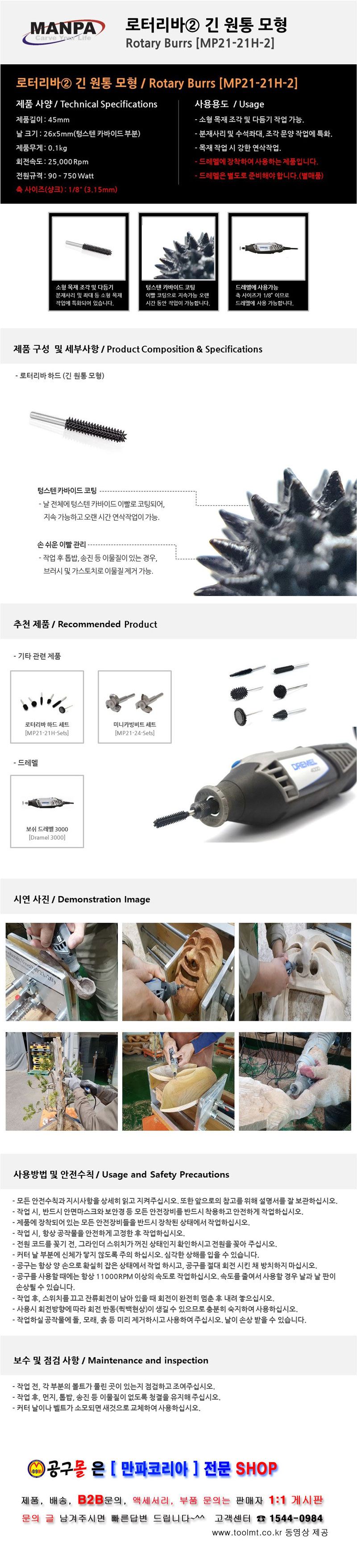 만파 로터리바 2번 긴 원통 모형 MP21-21H-2 MANPA 만파공구, 만파코리아, 공구몰, MP2121H2