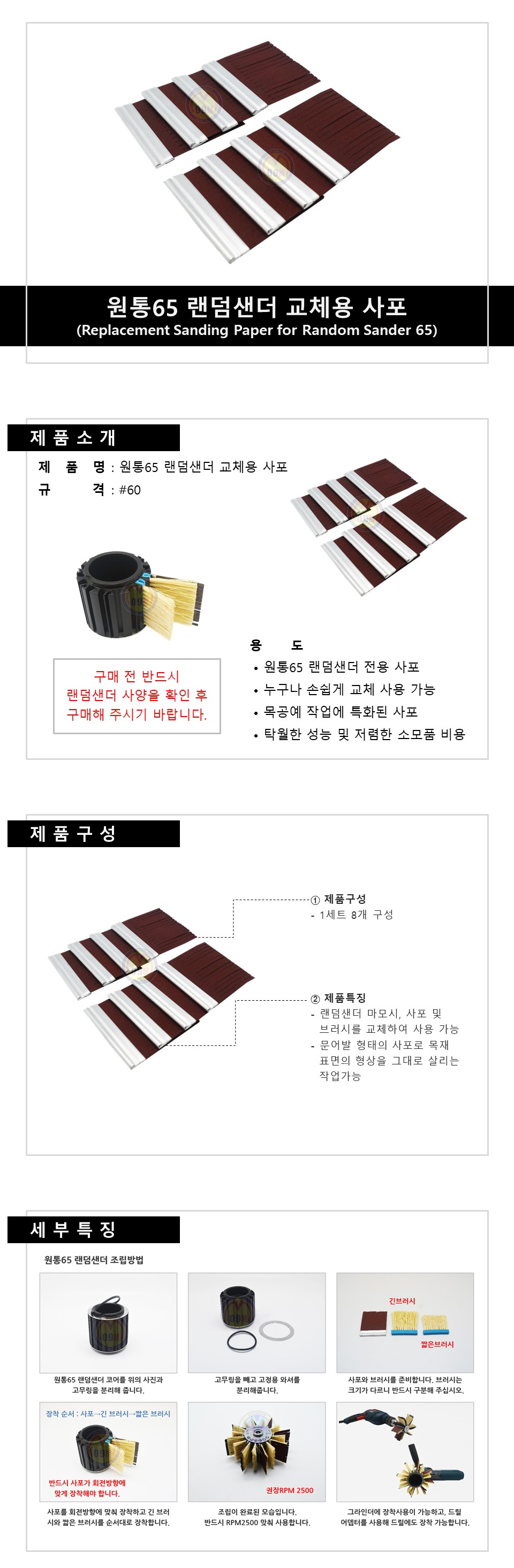 만파 원통65 랜덤샌더 소모품 사포 60번 조각기 홈파기 만파공구