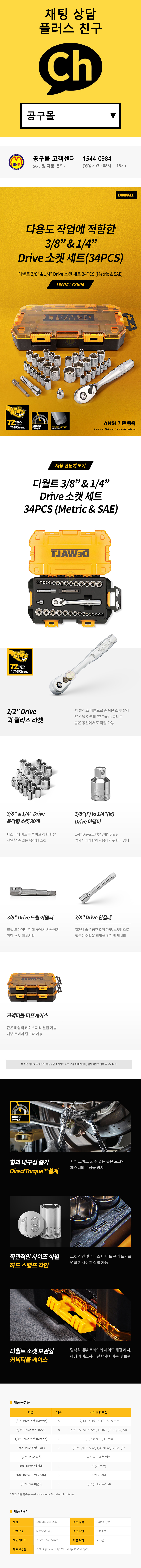디월트 1/2 3/8 복스세트 DWMT73804 (10PCS) 5-19mm 복스알세트