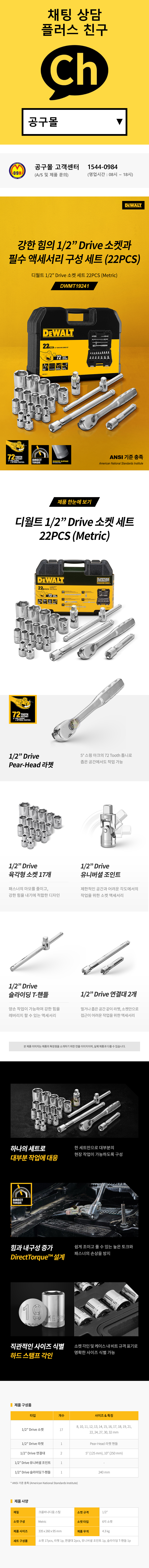 디월트 1/2 복스알세트 DWMT19241 (22PCS) 8-32mm 복스 렌치 세트