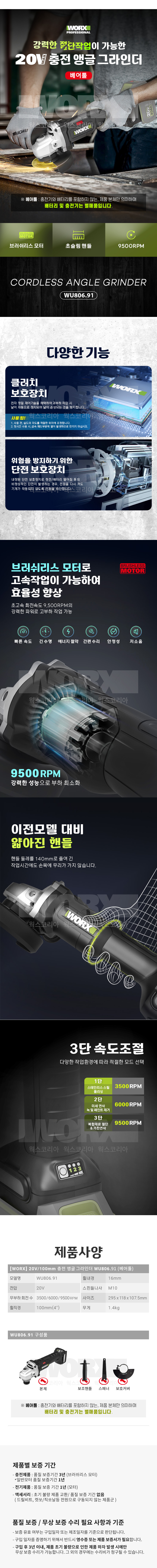 웍스 충전그라인더 WU806.91 (20V-베어툴) 충전절단기 그라인더