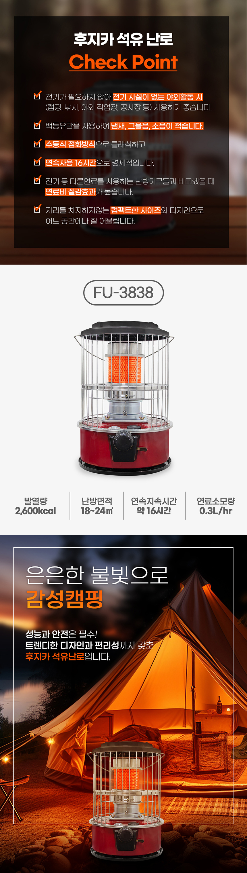 후지카 석유난로 (심지식) FU-3838 - 빨간색