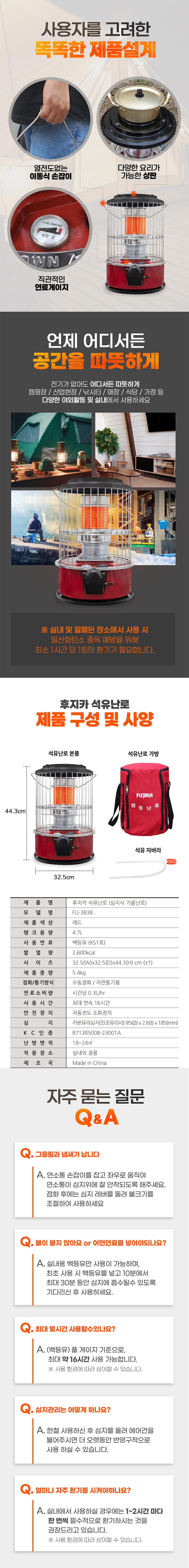 후지카 가스난로 FU-118 FU-119 (화이트,레드) 2중안전장치 국내생산