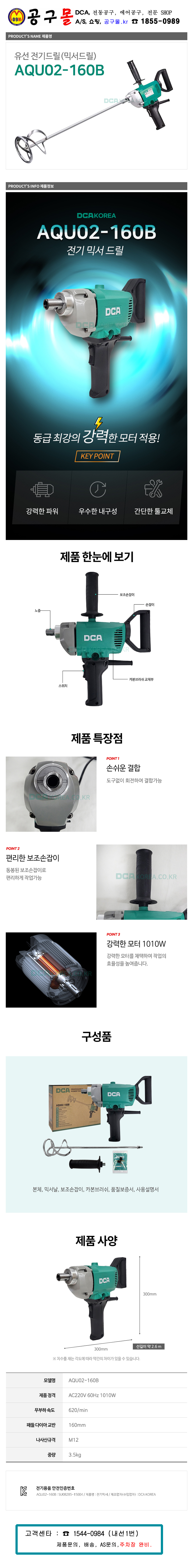 DCA-전기드릴(믹서드릴) AQU02-160B 1010W 믹서날포함 전기 믹싱드릴 시멘트 반죽, 혼합