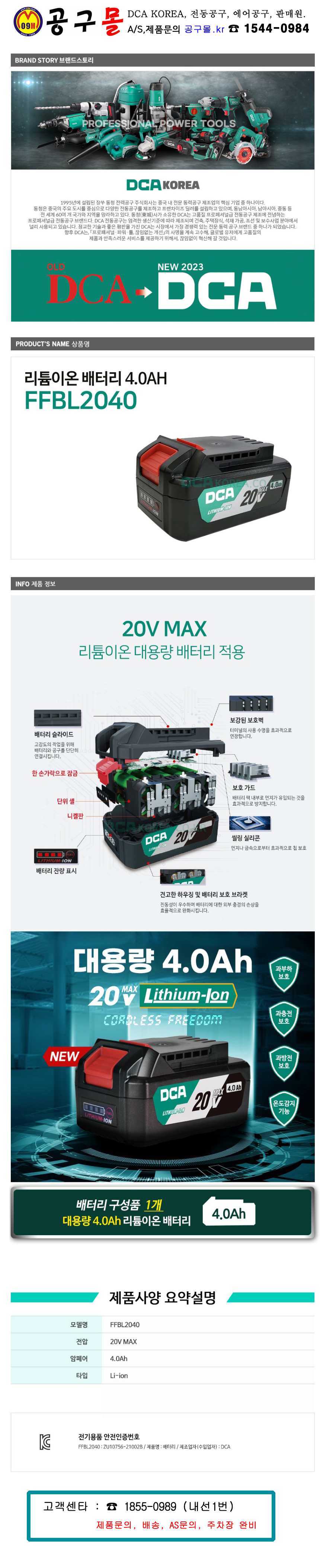 DCA-리튬 배터리 20V-4.0Ah (FFBL2040) 밧데리 잔량 표시 ADJZ2060IEM ADPL208EM DCA KOREA.