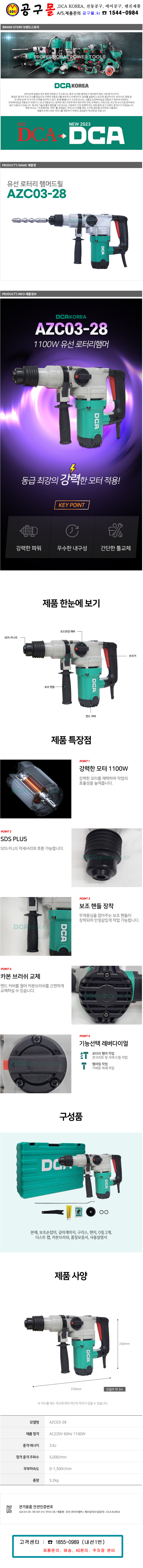 DCA-햄머드릴(SDS) AZC03-28 220V-1100W 유선로타리 함마 콘크리트 석재 천공작업